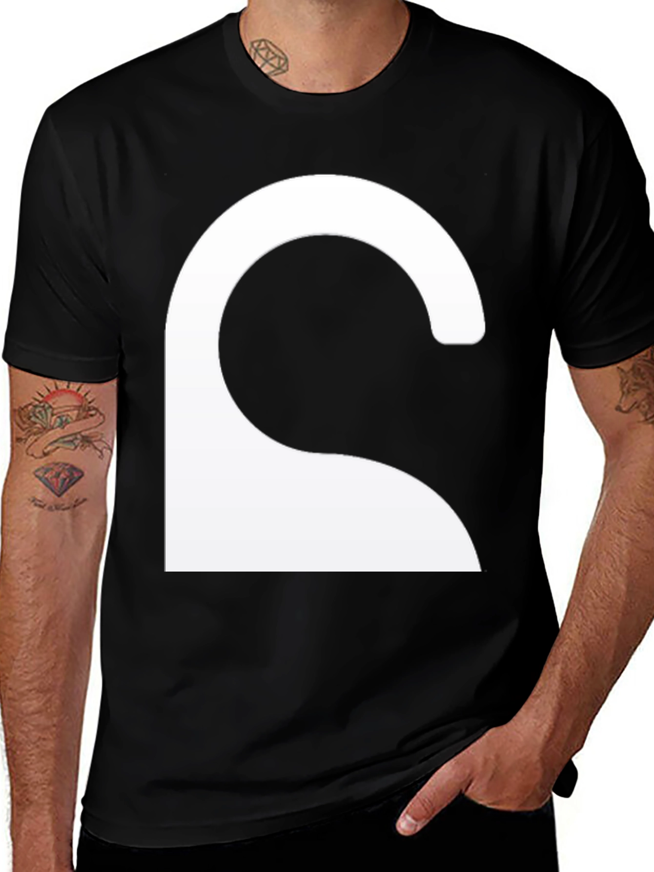 Showcase your modern style with this unique black t-shirt featuring a bold, abstract white graphic. The design, resembling a stylized curve, adds an artistic edge to your everyday wardrobe. Made from comfortable fabric, this tee is perfect for casual outings, social gatherings, or simply relaxing in style. Pair it with jeans, shorts, or your favorite accessories to complete the look. Comfortable and eye-catching, this t-shirt makes a statement without saying a word.